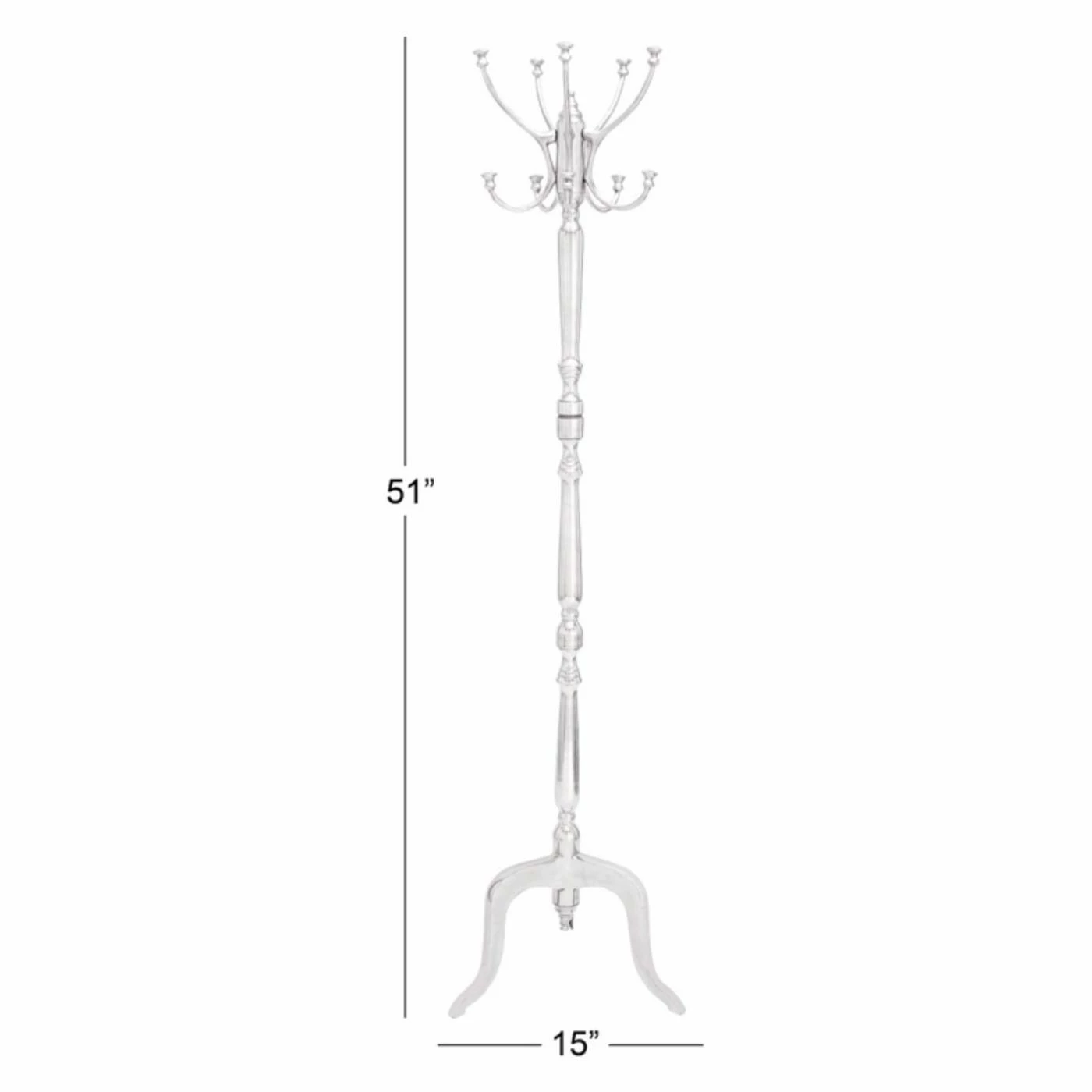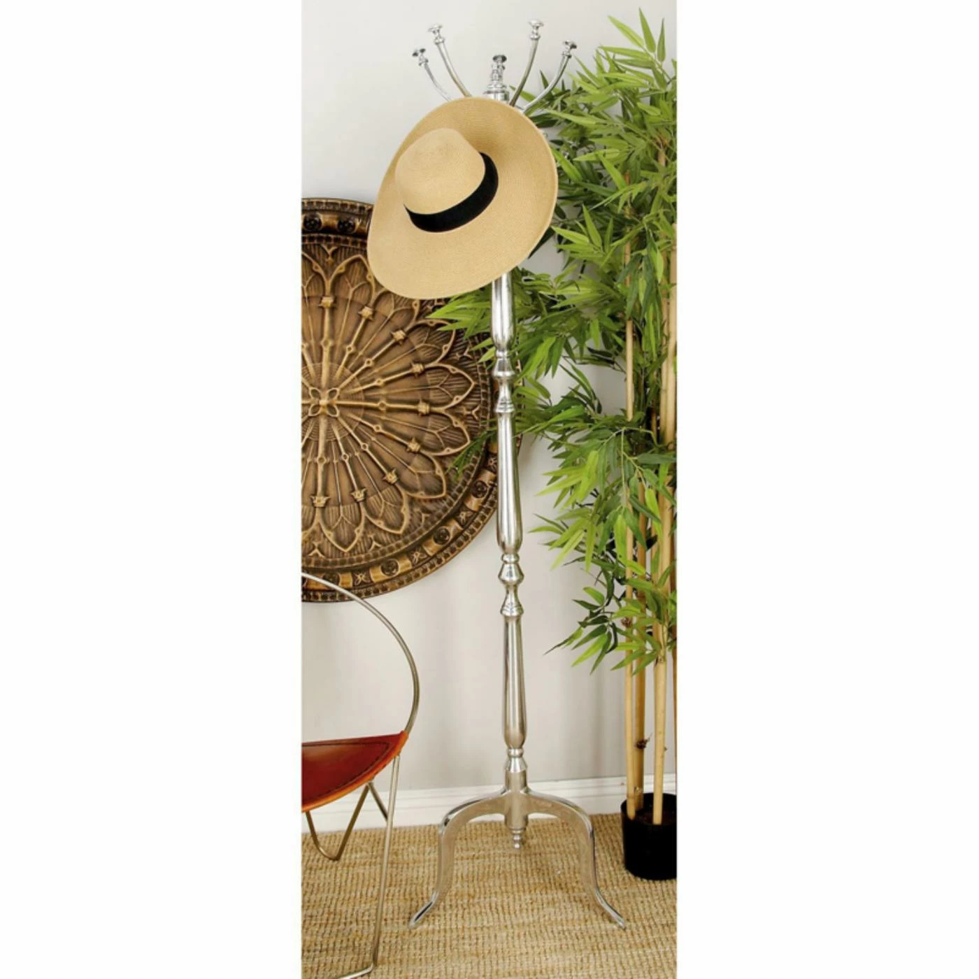 The modern Aluminum Standing Coat Rack – 72H in. brings sleek classic appeal to your entryway. Crafted of aluminum, this coat rack features a delicate spindle design that wonβt rust, corrode, or tarnish. This free-standing coat rack comes complete with hat hooks for your convenience.