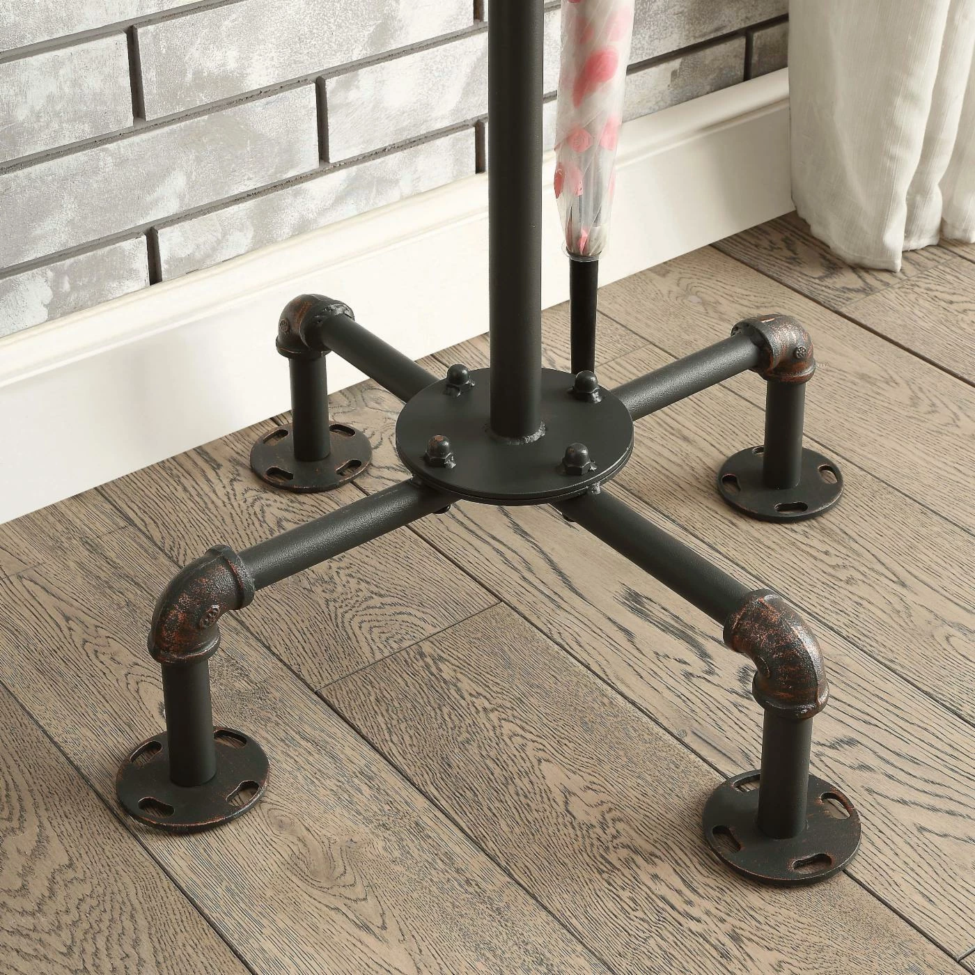 - Finished in industrial black with copper accents