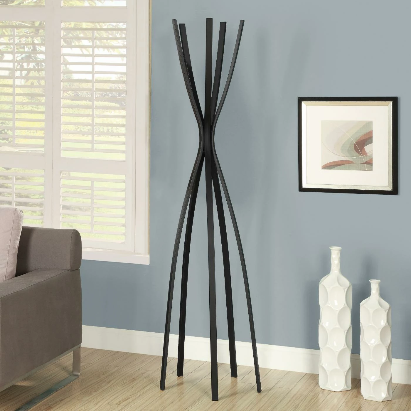 The Metal Contemporary Coat Rack is a visually striking home accent that turns a functional accessory into a sculptural modern statement. Crafted from metal in your choice of finish, this modern coat rack is quick and easy to assemble, and offers five hanging points for coats and hats.