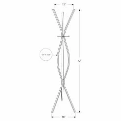 TheΒ Monarch Metal Contemporary 72 in. Coat RackΒ boasts sleek, clean lines and a unique shape for a contemporary style addition to your entryway or foyer. The sturdy metal design comes with three hooks for hanging coats and hats and a tripod base for a stylish look. Choose from the available finishes to get the right look for your home.