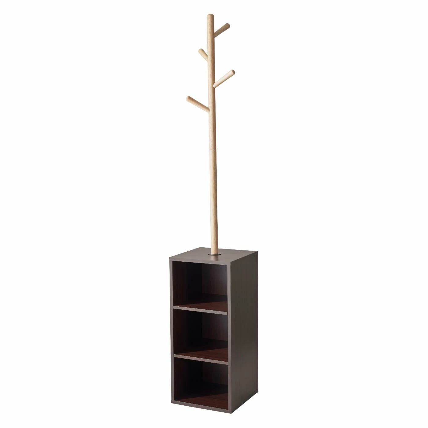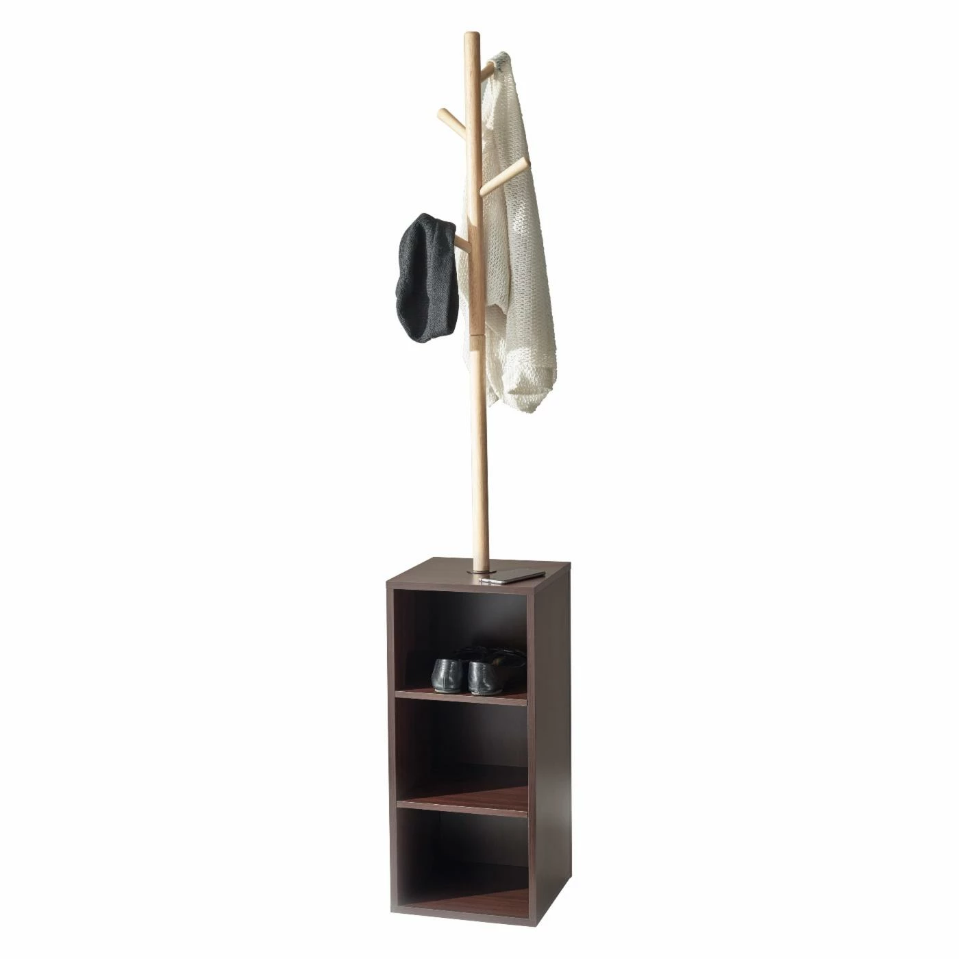 Keep everything in your entryway neat and organized with the Adesso Hutch Storage Coat Rack. It comes with three storage cubbies that are perfect for holding shoes, books, or other accessories. Use the four hooks to keep track of scarves, keys, jackets, and purses, instead of frantically searching for them every morning as you head out the door. An attractive dark walnut finish on the storage base provides an intriguing contrast with the natural, unfinished look of the coat rack. Some assembly is required.