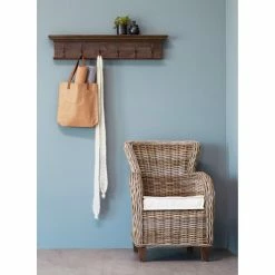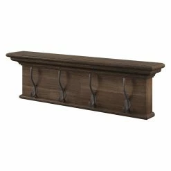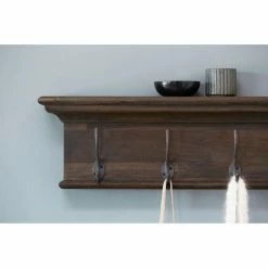 Add smart and stylish organization to your home with the Nova Solo Wall Mounted Coat Rack. This coat rack is crafted from high-quality teak wood in a natural, dark-stain finish. Choose from the available sizes to customize the number of large, antique brass hooks best for your needs. The built-in top shelf of this wall-mounted rack offers the perfect place for displaying photos, plants, or other accessories of your choice. Some assembly required.