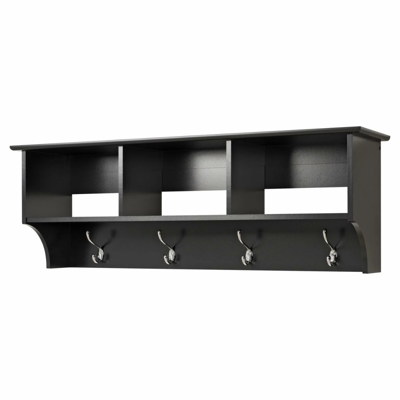 Don’t settle for just another old coat rack. Choose theΒ Prepac Sonoma Black HangingΒ Coat Rack and add another style element to your home. Constructed from high-quality composite wood laminate, this coat rack hasΒ a classic black finish. Three storage compartments hold hats, gloves,Β and other items, and four large double hooks hold even the heaviest of coats. The rack includes an easy-to-install two-piece hanging rail system. Dimensions: 14.25W x 10D x 8.75H inches.