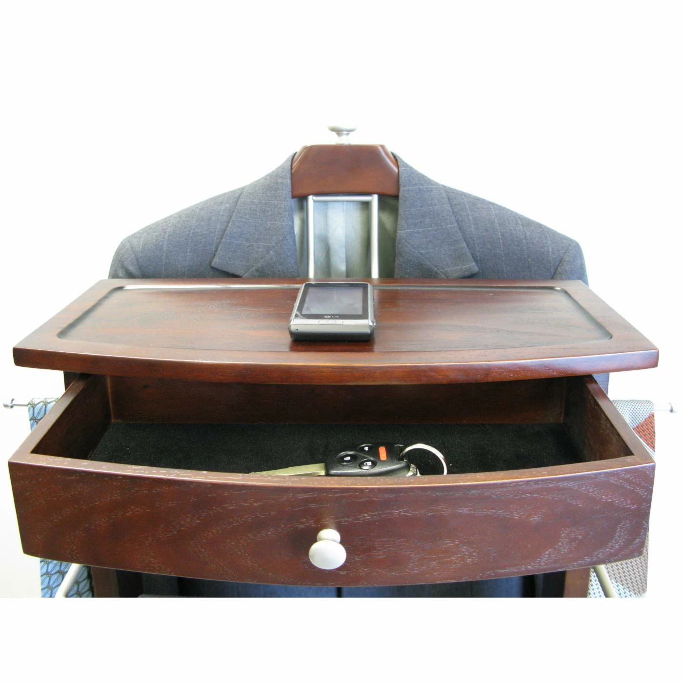 - Includes large drawer and a tray for storing small items
