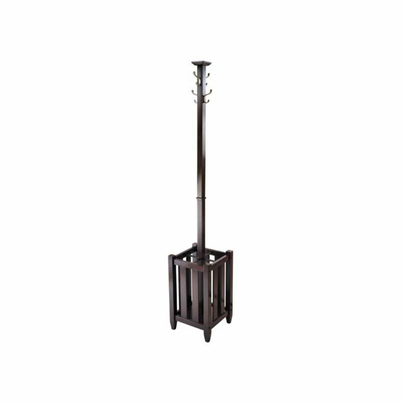 Weather forecasts become essential reading when you have the rainy day pleasure of using the Winsome Memphis Coat Tree and Umbrella Rack. This luxurious umbrella rack features durable wood construction in a rich cappuccino finish, with four satin nickel-finished hooks for hanging coats, scarves, and more.