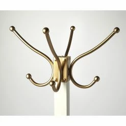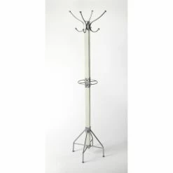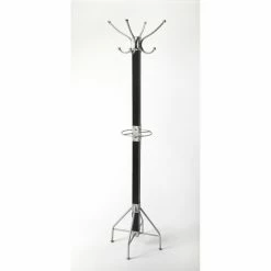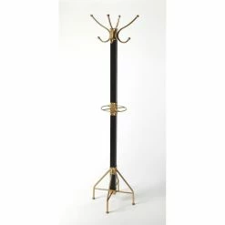 Your entryway will stay free of clutter with the Butler Specialty Logan Square Free Standing Coat Rack ready to take coats, hats, and umbrellas of your family and guests. Hang coats and hats on the top of this coat rack with the four hooks and place umbrellas on the ring stand in the middle. The mango wood frame features iron hooks, rings, and legs. Choose from the available finish options to acquire your favorite.