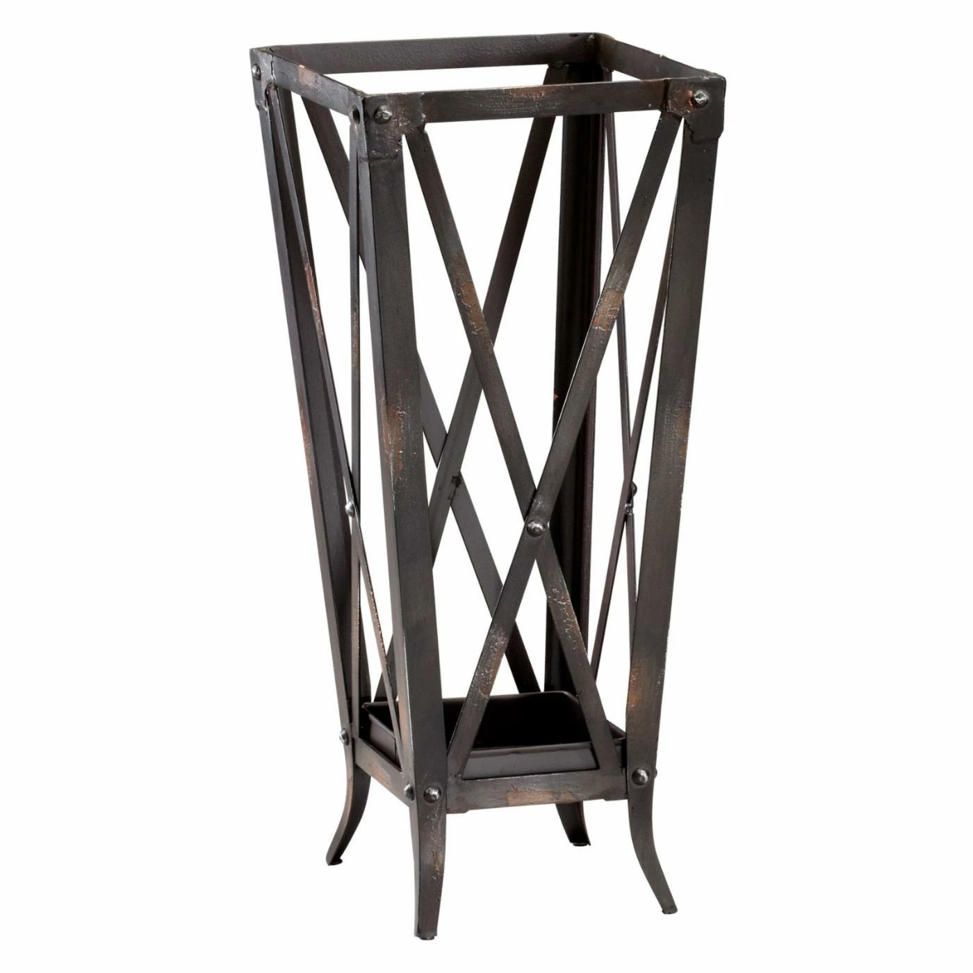 The deep black and brown finish of the Cyan Design Hacienda Umbrella Stand gives it a versatile look that pairs well with a variety of dΓ©cor styles. This umbrella stand is crafted from iron, and features an open-weave design that allows air circulation. It has a handy drip pan at the base to catch moisture run-off when you drop in your umbrella after a rainy day.