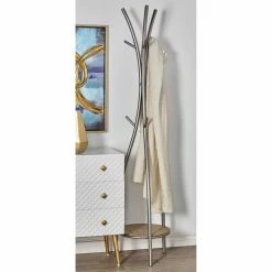 Sleekly stylish as well as functional, the DecMode Industrial Iron and Fir Wood Curved Coat Rack is thoughtfully designed for modern living. This coat rack features a durable iron construction and a versatile silver finish. The multiple hooks are perfect for keeping outer garments safely stowed until needed.
