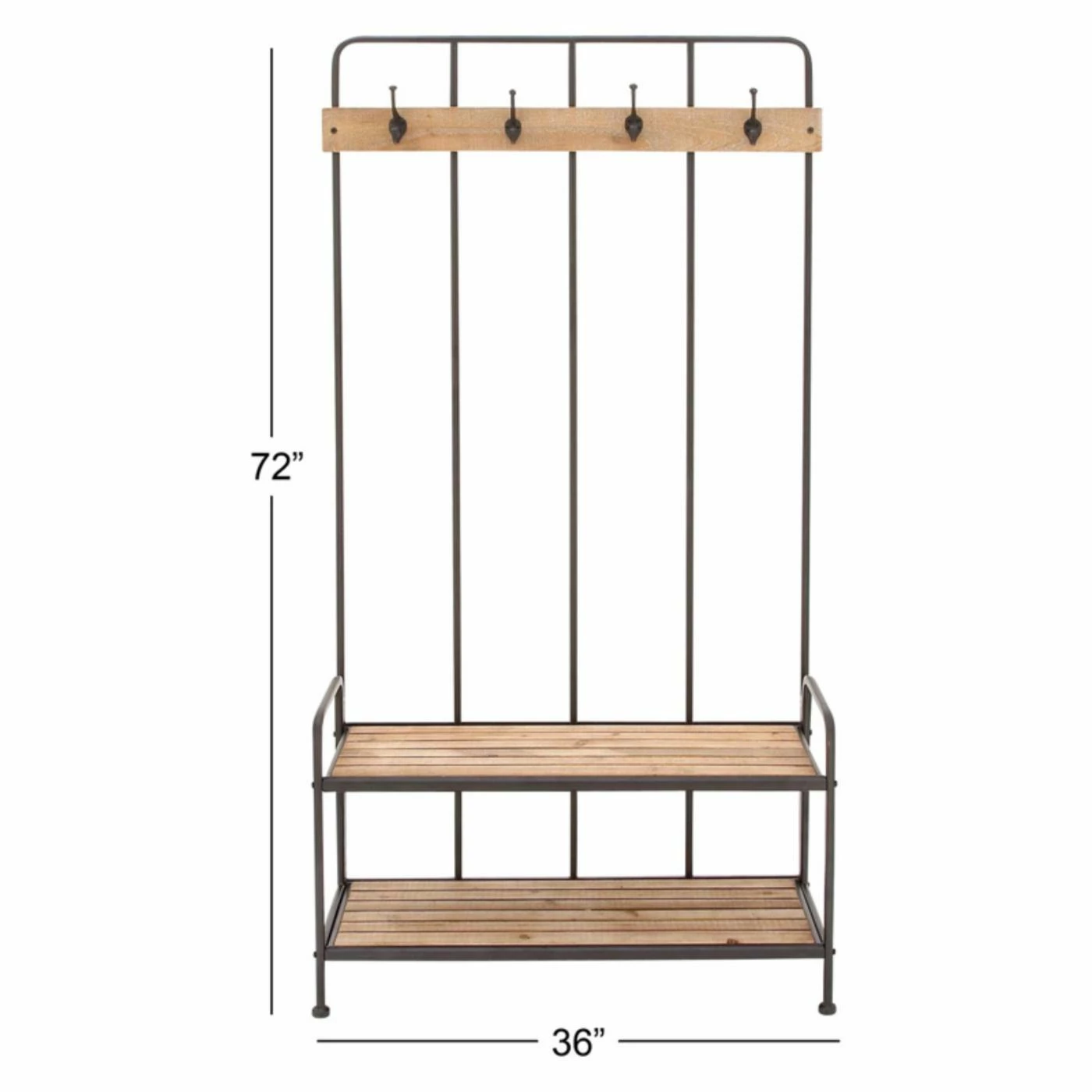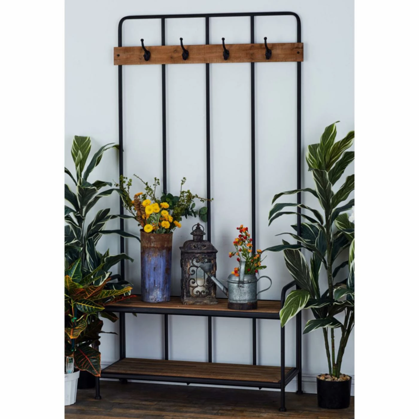 Tidy up your entryway, foyer, or mudroom with the DecMode Metal and Wood Coat Rack. Crafted out of light brown fir wood and black iron, this sturdy stands provides four hooks for hanging coats, bags, scarves, and hats. Two sturdy fixed lower shelves are ideal for organizing shoes and other items.