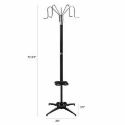 The practical Happimess Ethan Parlor Standing Coat Rack provides hooks for hat and coats to make comings and goings easier. Durably constructed from metal, this rack features five arched hooks in a classic lampshade top. Metal rings near the base hold umbrellas, while a basin just below collects dripping water so your floor stays dry.